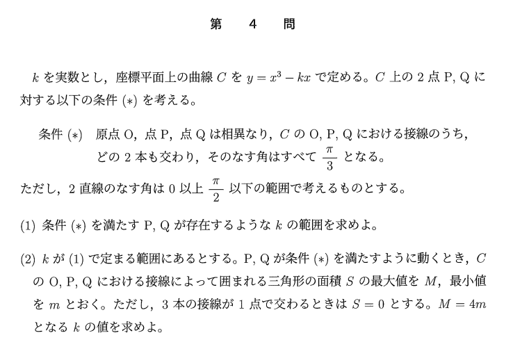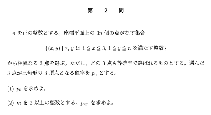 で、十分だと思います。過去の東大数学だと、簡単な問題がほぼない2010年などがかなり難しい年だと思っていますが、それに匹敵する難度に感じました。各設問ごとの分析などは別の機会に行いたいと思います。(和田)